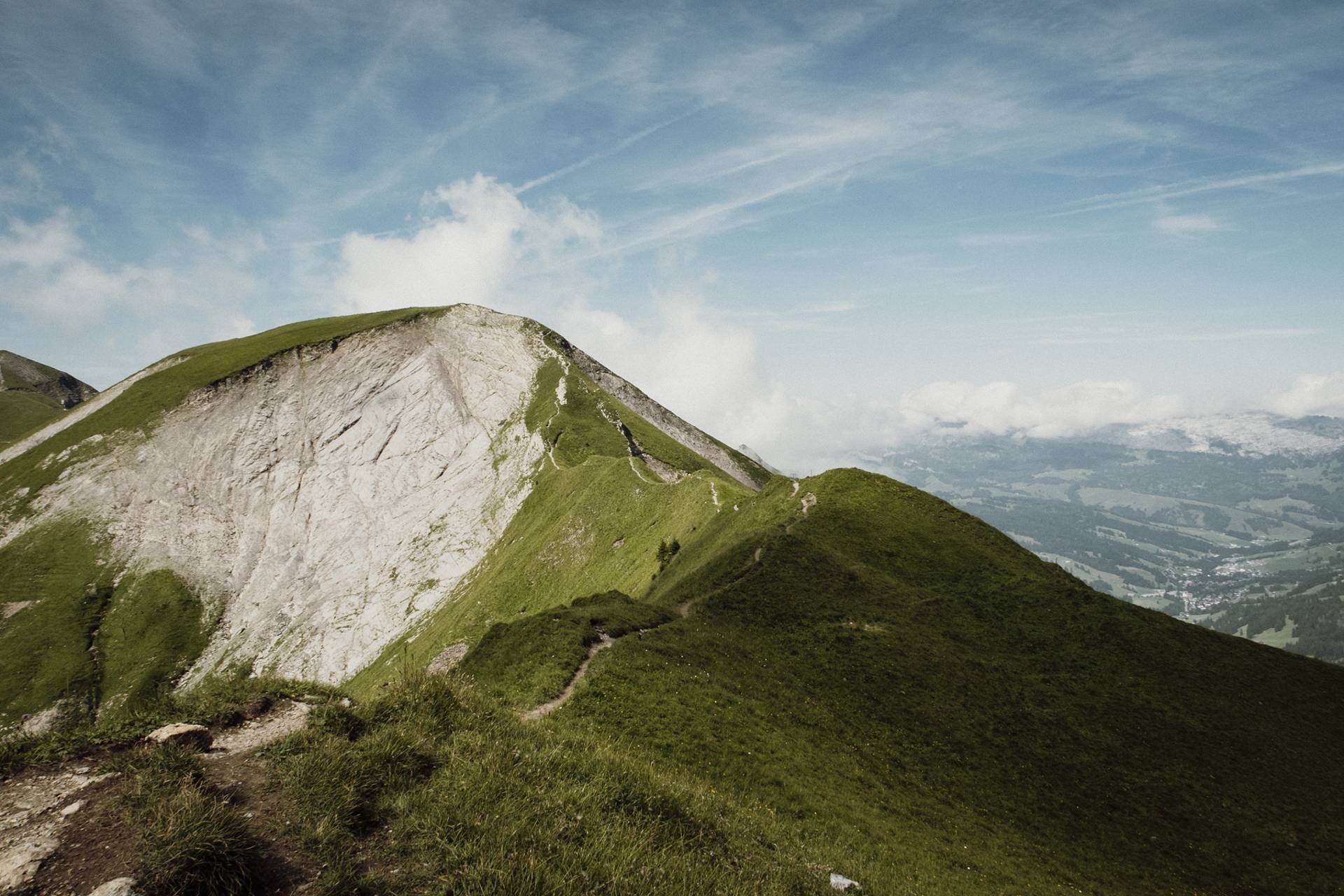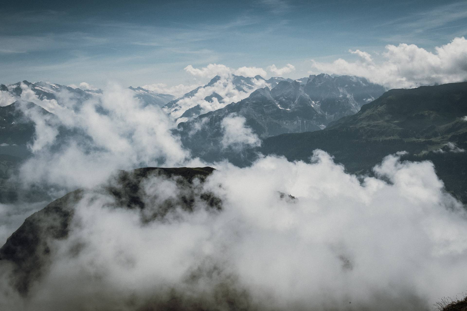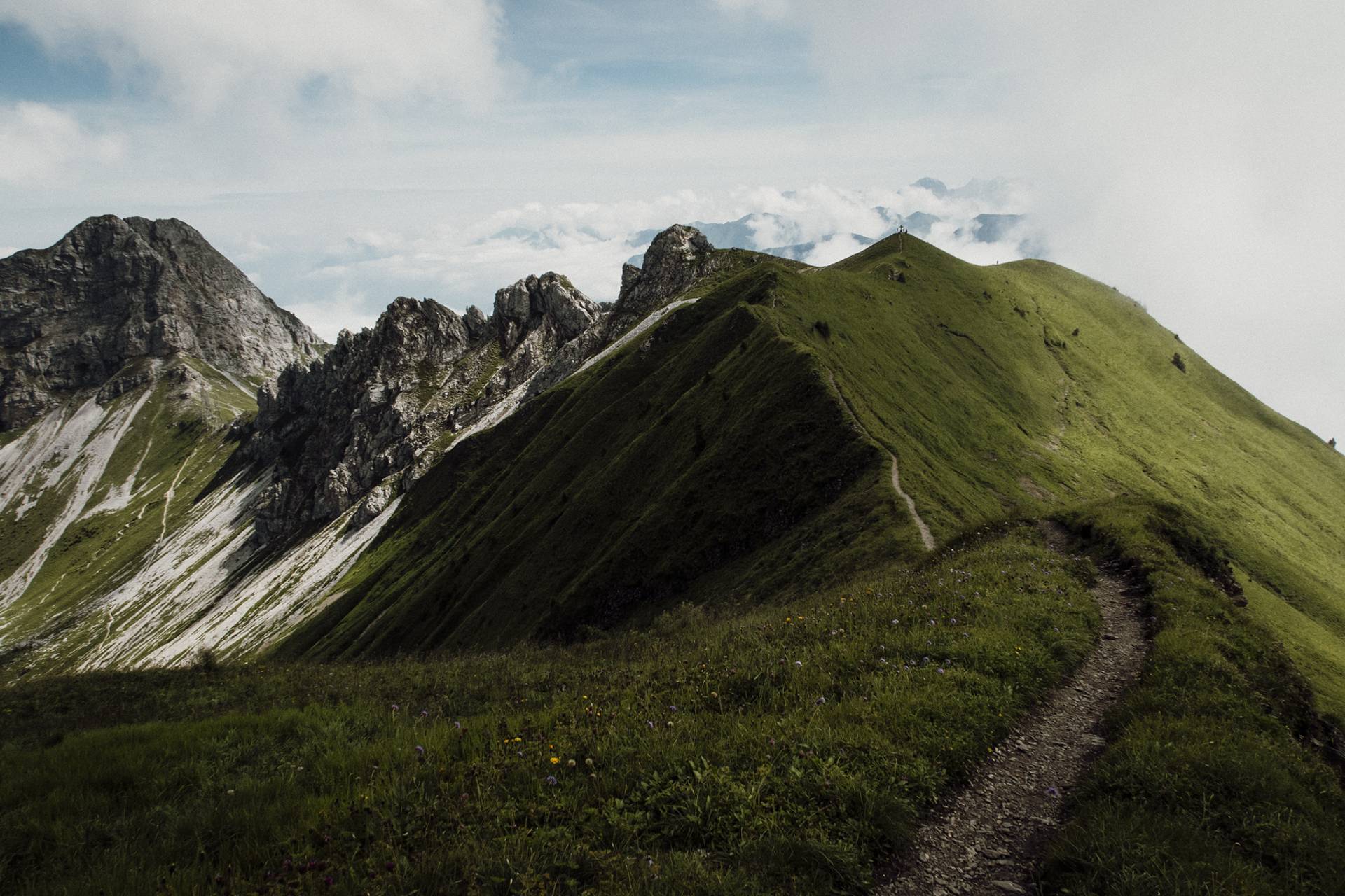 Ici, rien de techniquement difficile mais il faut être en forme car l’itinéraire est plutôt long et le dénivelé positif assez important. Sans parler du fait qu’une fois en haut, on redescend un peu, puis on remonte, puis on redescend, et on remonte encore le long de toutes ces belles petites collines herbeuses. Tout ça pour atteindre 3 petits sommets bombés qui offrent une vue magnifique sur les Alpes bernoises.