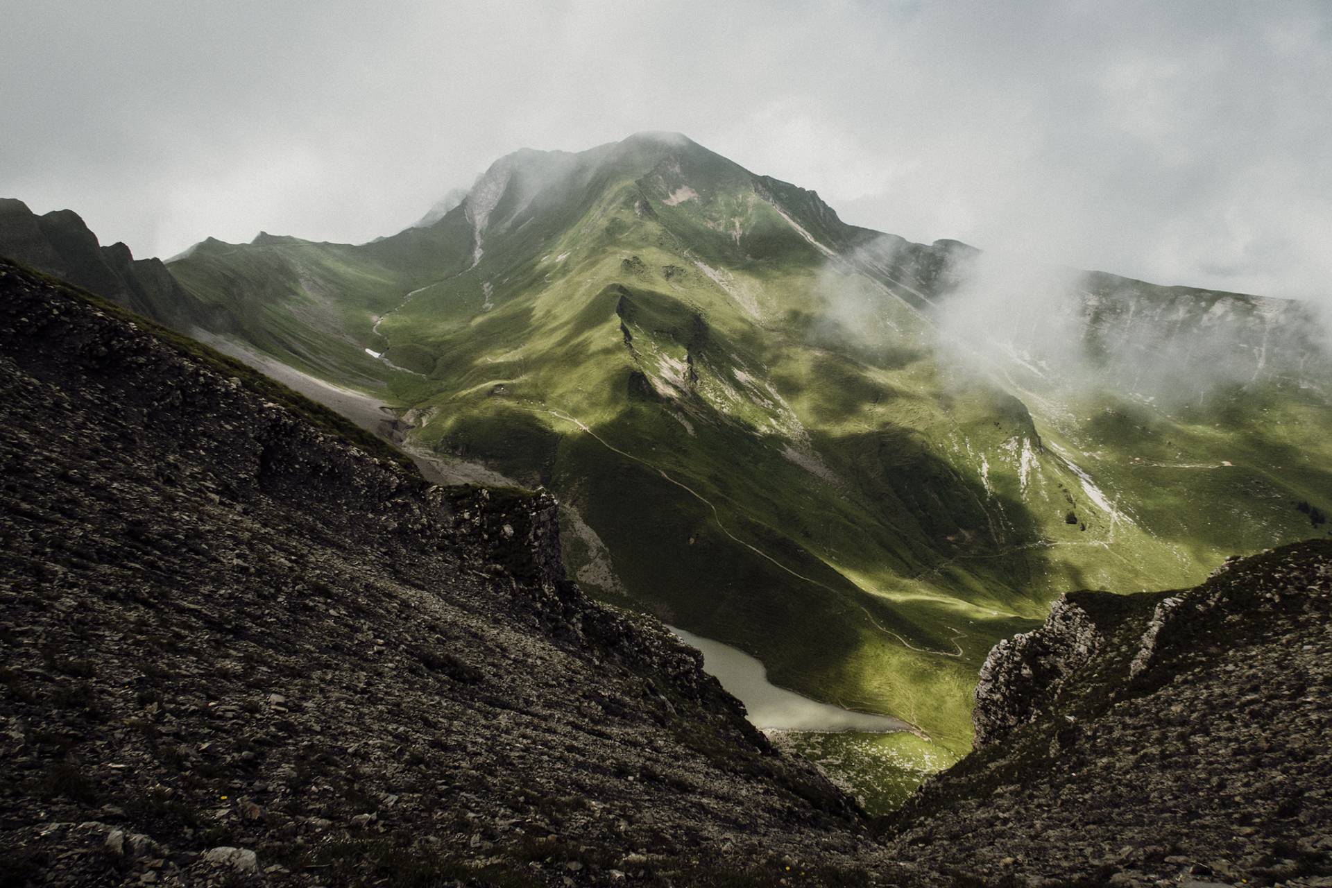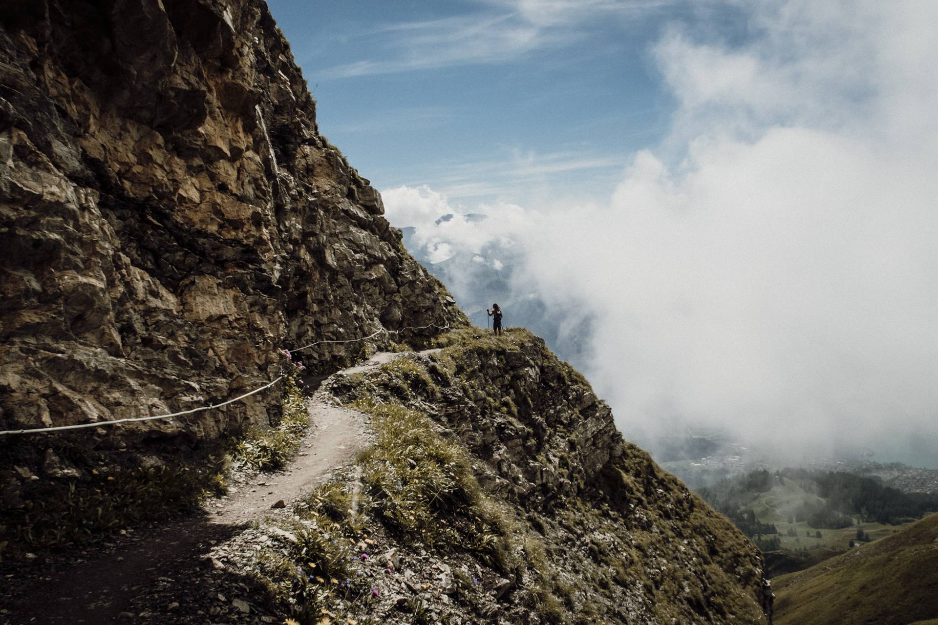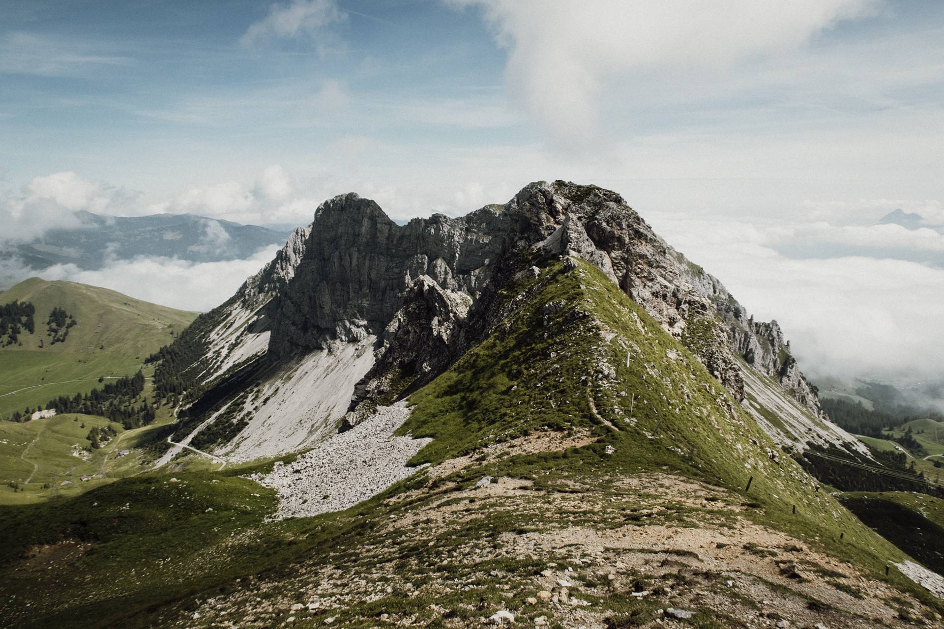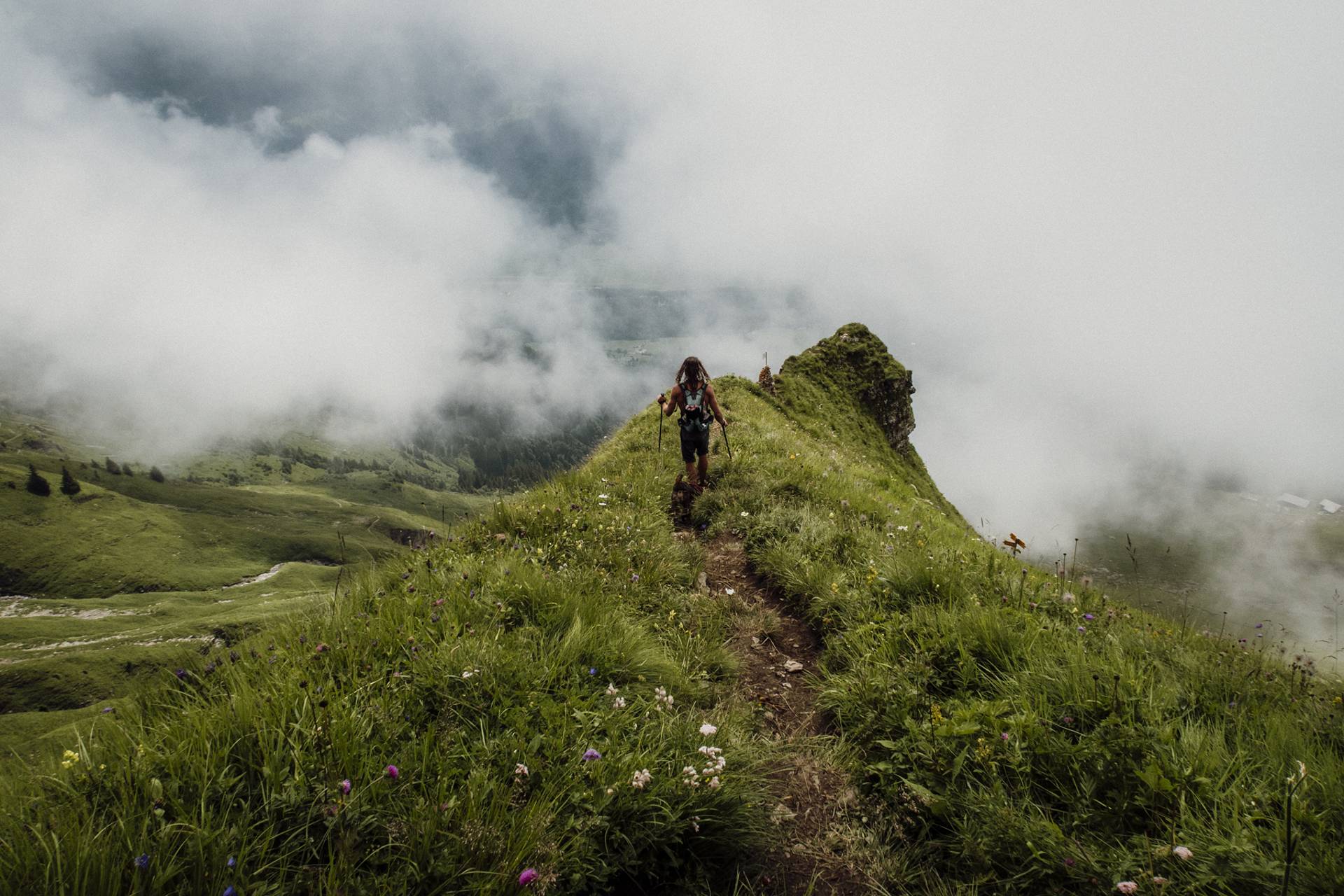Ici, rien de techniquement difficile mais il faut être en forme car l’itinéraire est plutôt long et le dénivelé positif assez important. Sans parler du fait qu’une fois en haut, on redescend un peu, puis on remonte, puis on redescend, et on remonte encore le long de toutes ces belles petites collines herbeuses. Tout ça pour atteindre 3 petits sommets bombés qui offrent une vue magnifique sur les Alpes bernoises.