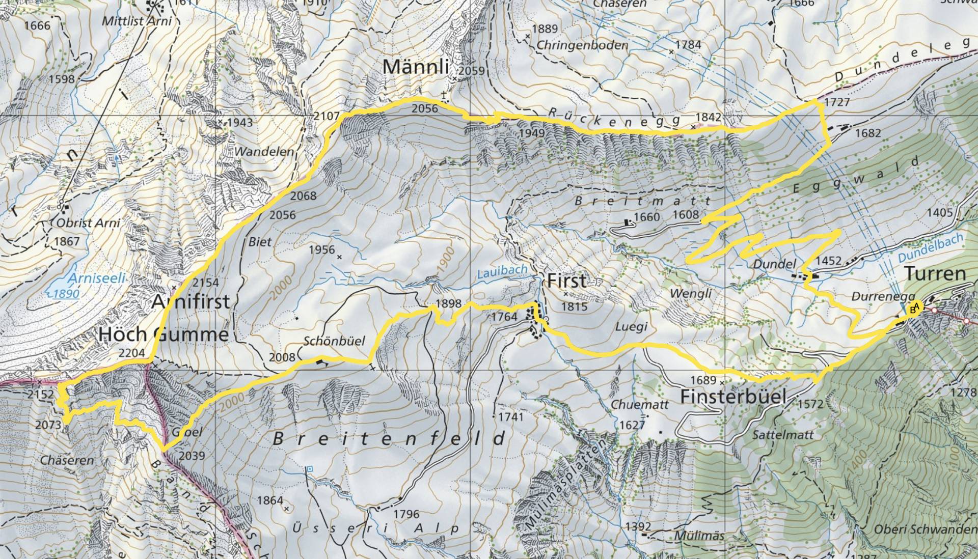 Depuis Türren, suivre la boucle dans le sens inverse des aiguilles d’une montre