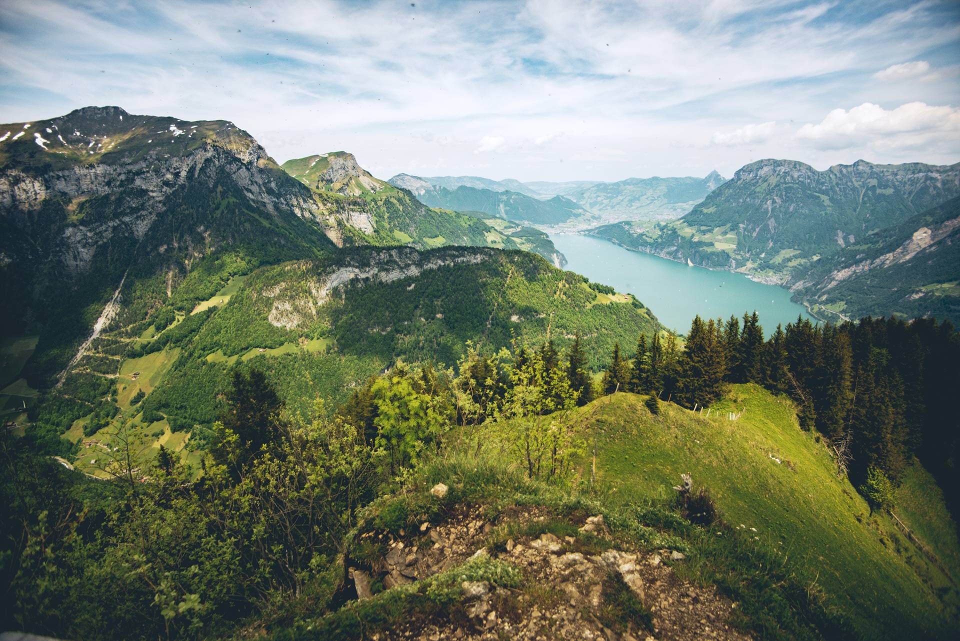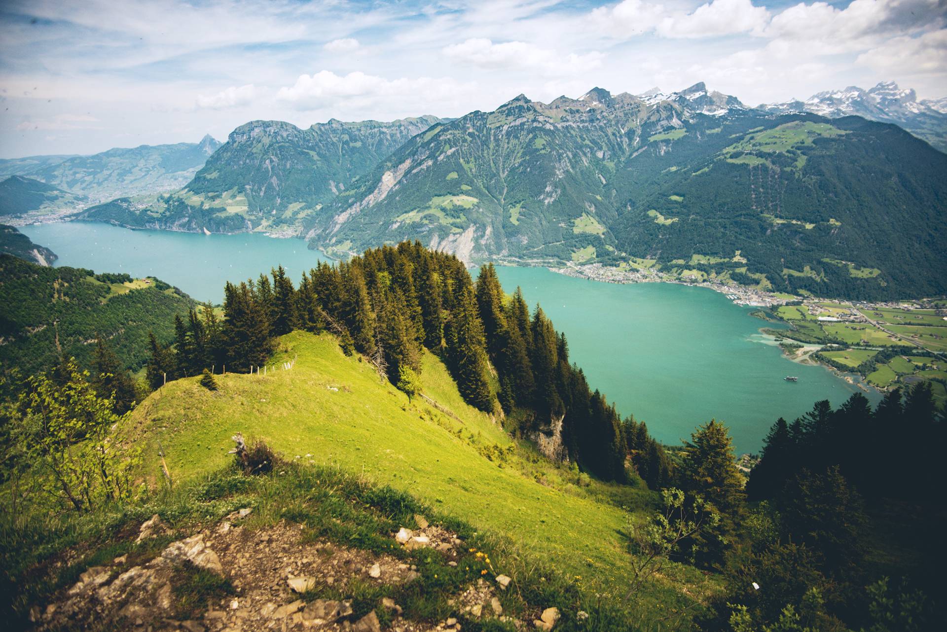 Cet itinéraire nous emmène vers un petit sommet tout rondouillet, flanqué d’une croix et d’un banc, offrant une vue délirante sur le lac et les montagnes à 360°.