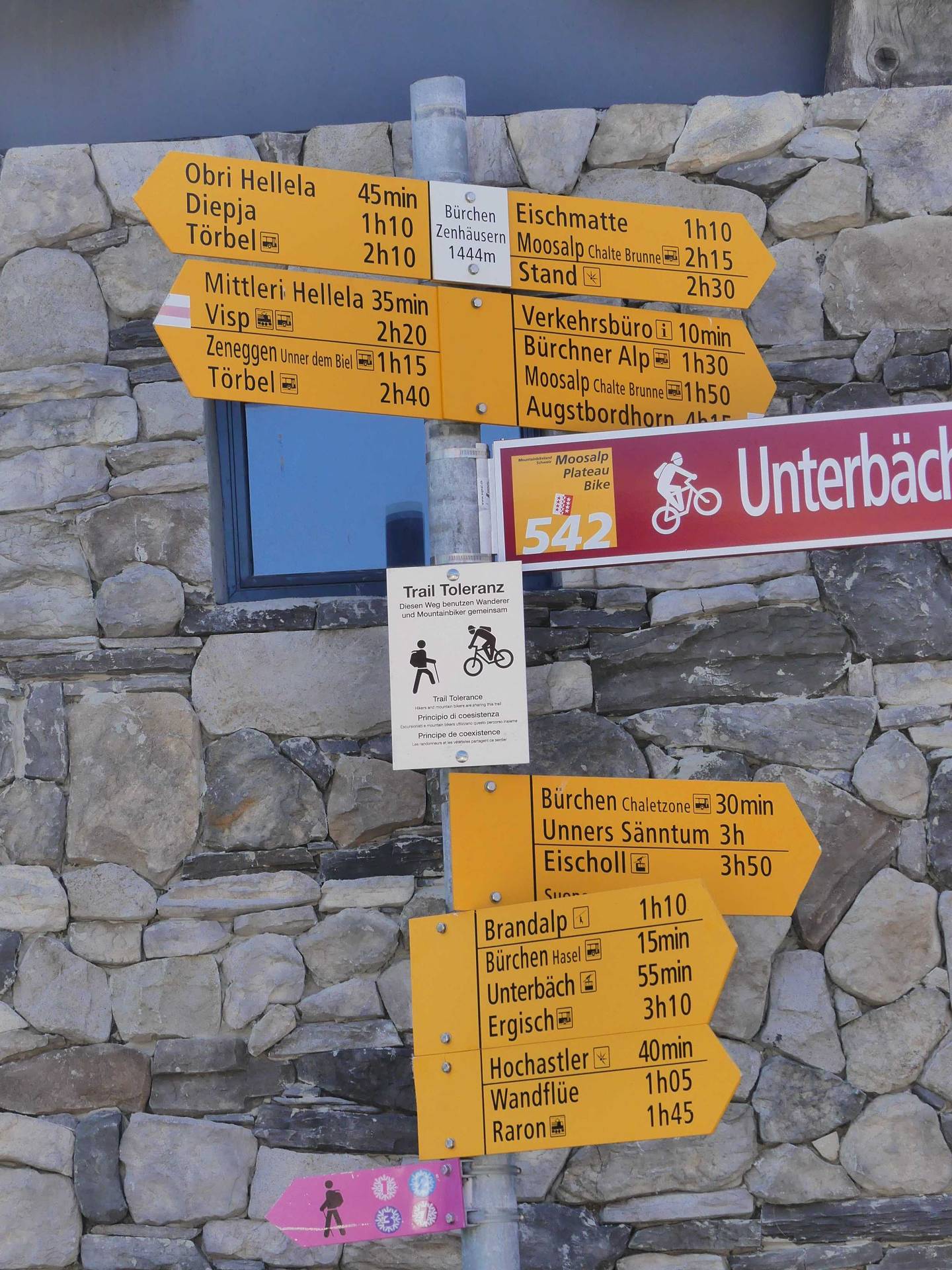 Bürchen-Zenhäusern – Ängi – Guggine – Wiisalpji – Brand Unterbäch – Ta – Pfammatte – Obri Breitmatte – Alte Eischlersuon – Vieux bisse d’Eischoll – Chumme – Hofure – Waldweide – Ifil – Ritinu – Ergisch