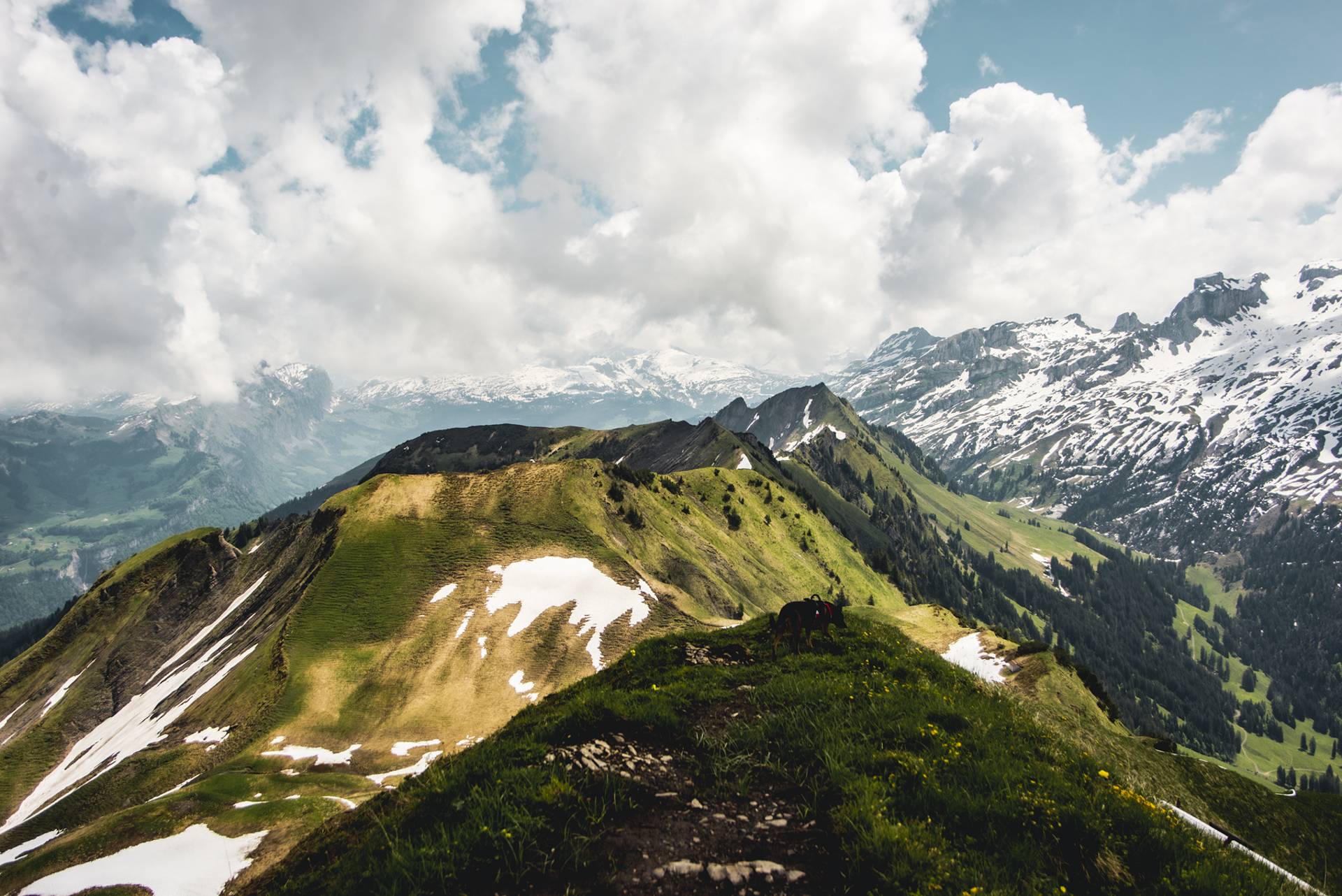 Pour diminuer le dénivelé, il est tout à fait possible de monter en télésiège directement jusqu’au Fronalpstock. La partie entre la station intermédiaire et le Fronalpstock n’est pas forcément incroyablement magnifique et il n’est pas vraiment dommage de la zapper.