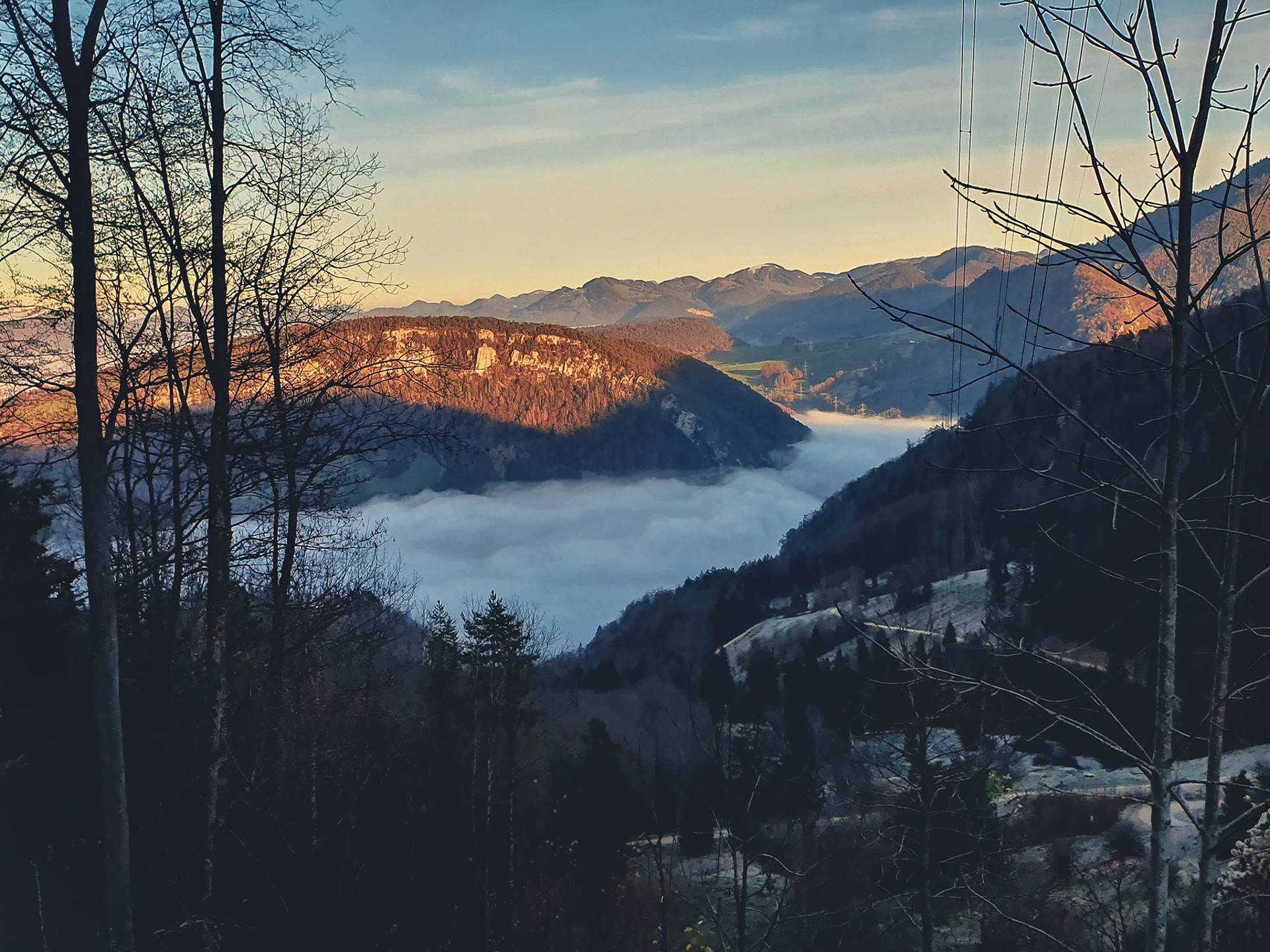 C’est une très jolie marche que je vous propose de découvrir dans cet article. Je la pratique régulièrement, en particulier les jours où le brouillard stagne dans la vallée, comme aujourd’hui 😉