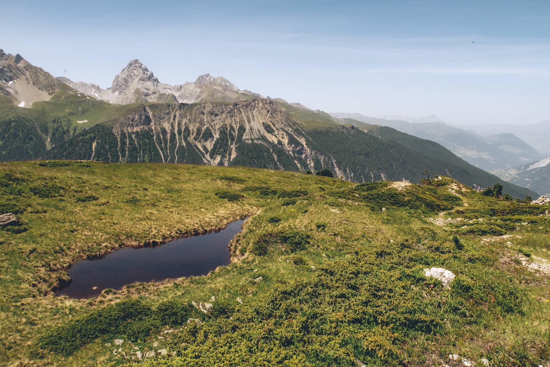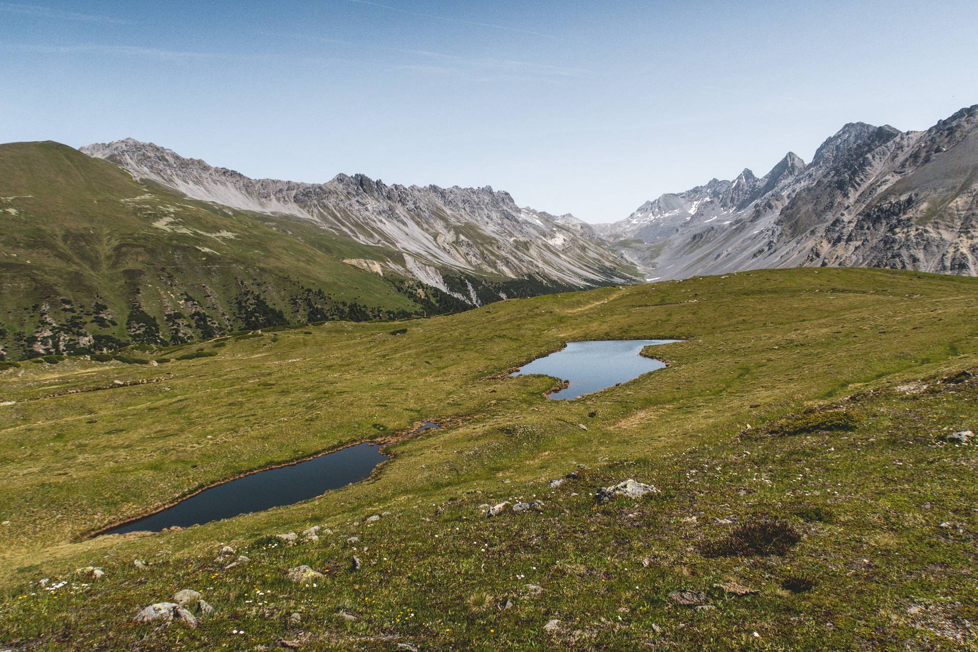 Cuolm da Latsch : un petit dôme vert et des gouilles