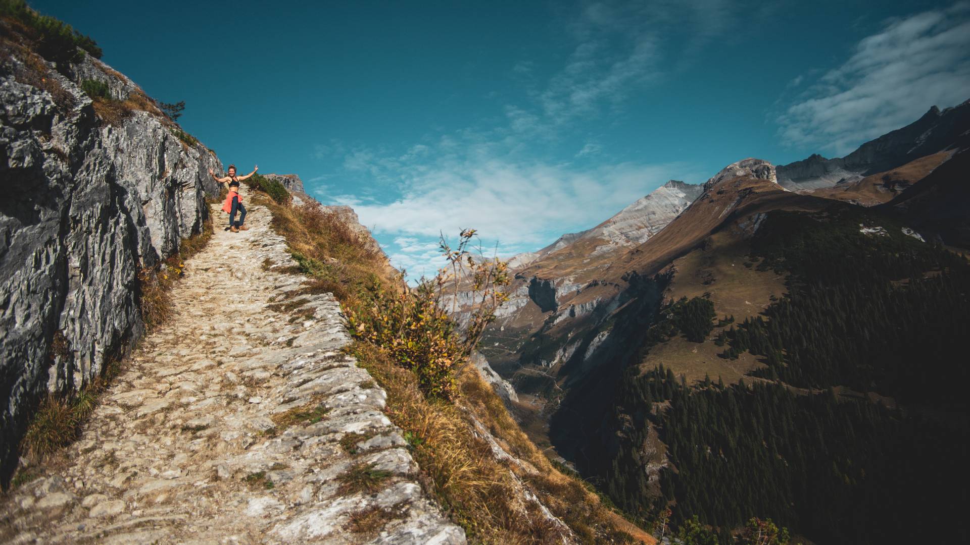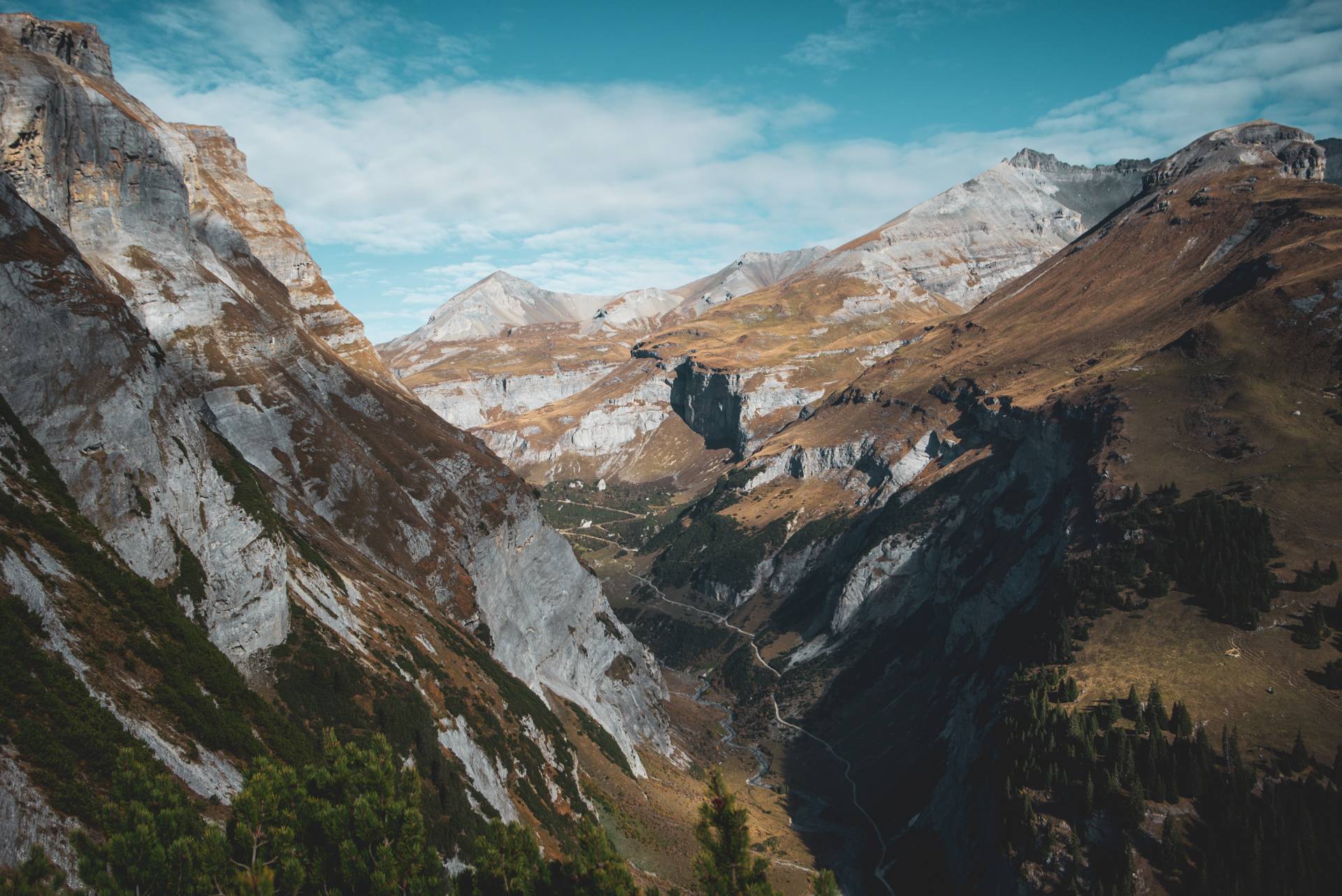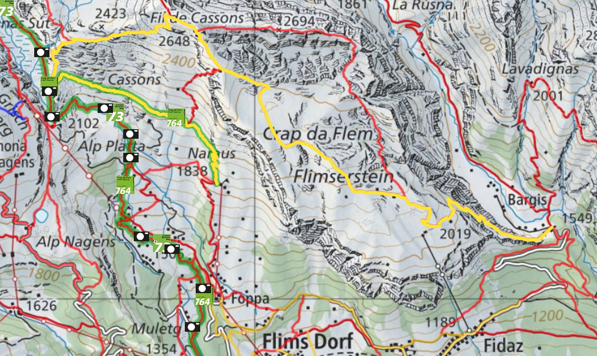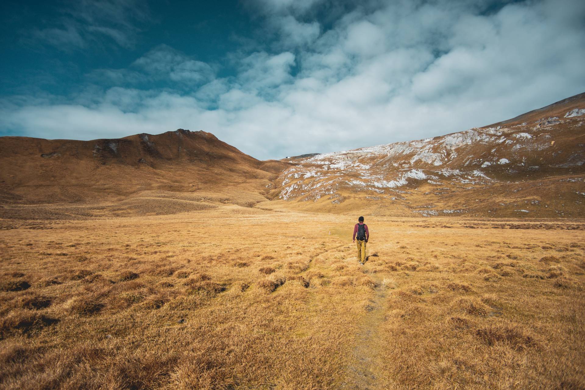 Cette randonnée débute à Bargis en empruntant un chemin de pierres plutôt raide à flanc de montagne par lequel le bétail est emmené sur l’alpage 500 m plus haut. La largeur du chemin est aisée pour l’Homme mais on ne peut s’empêcher d’imaginer l’un ou l’autre bovin dégringoler vers la case départ tant le bord du chemin descend à pic vers la vallée. La montée offre un joli panorama sur Bargis qui s’éloigne rapidement et paraît toujours plus petit.