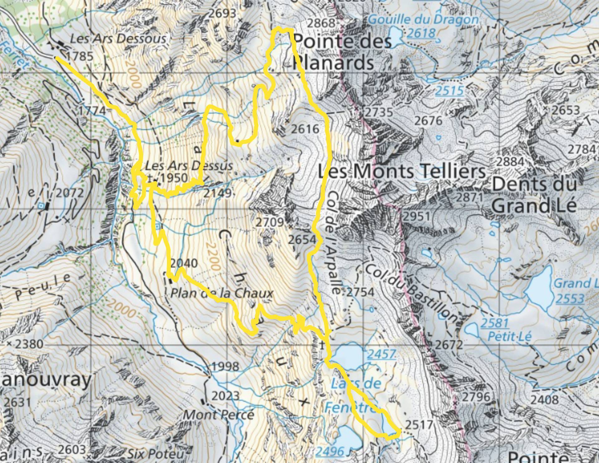 Etant une grande fan de randos en boucle, il était difficile pour moi de me résoudre à monter au Lacs pour redescendre par le même chemin… Il existe une boucle qui part du col du Grand St-Bernard, seulement j’étais basée dans le Val-Ferret et souhaitais rayonner depuis là. Du coup, le très sympathique fromager de l’alpage des Ars m’a conseillé cet itinéraire que j’ai plaisir à partager aujourd’hui.