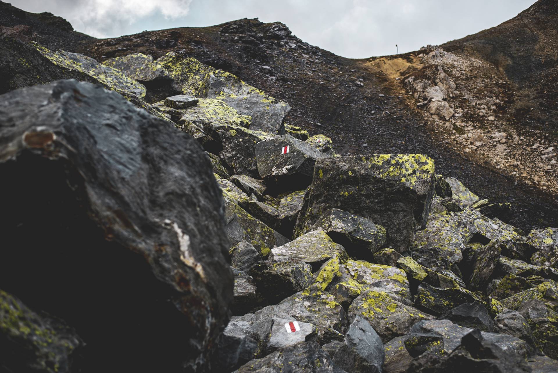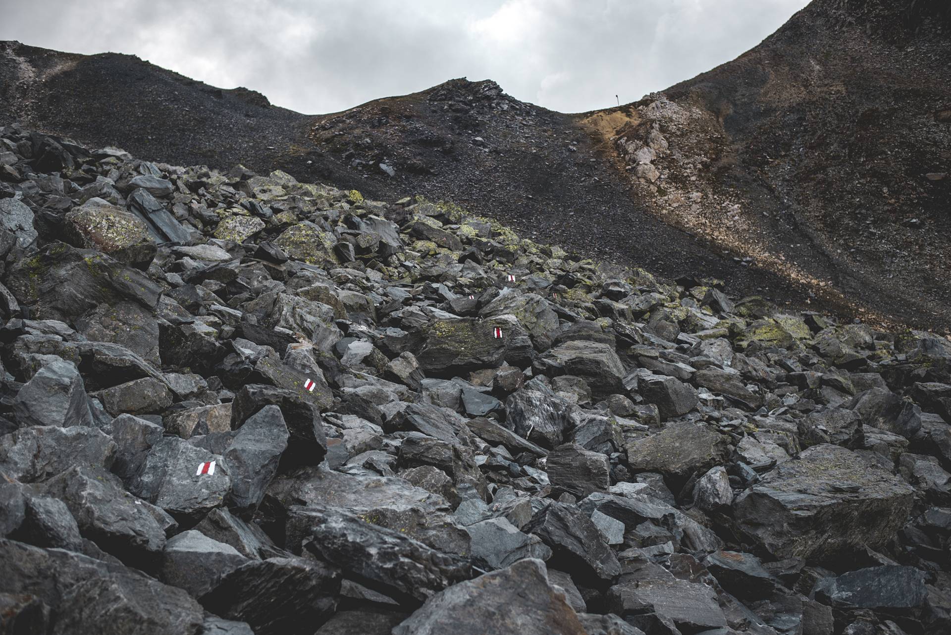 * un passage assez long sur un éboulis de gros cailloux. Le passage n’est pas du tout exposé ni en pente mais il nécessite une certaine agilité et un bon équilibre.