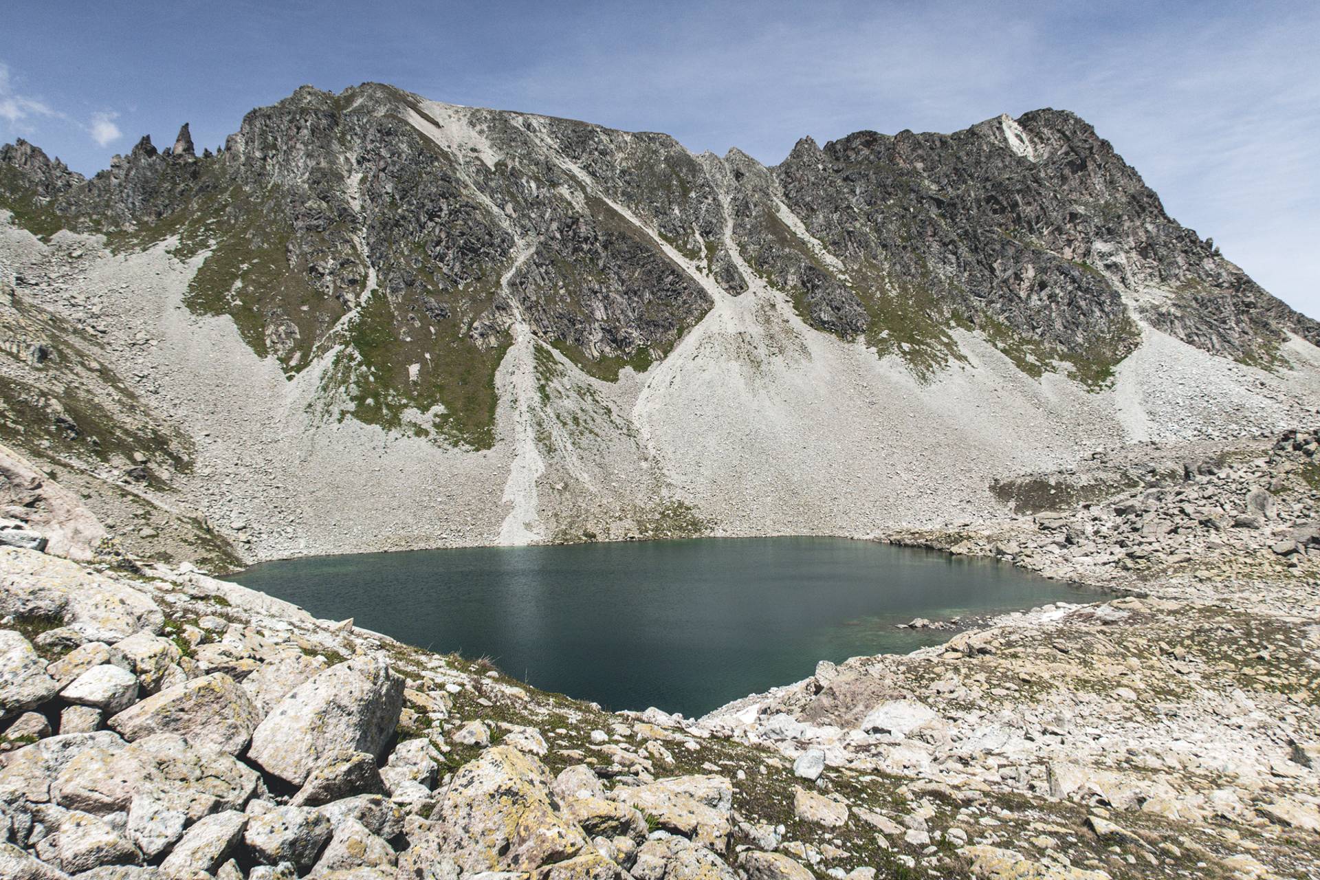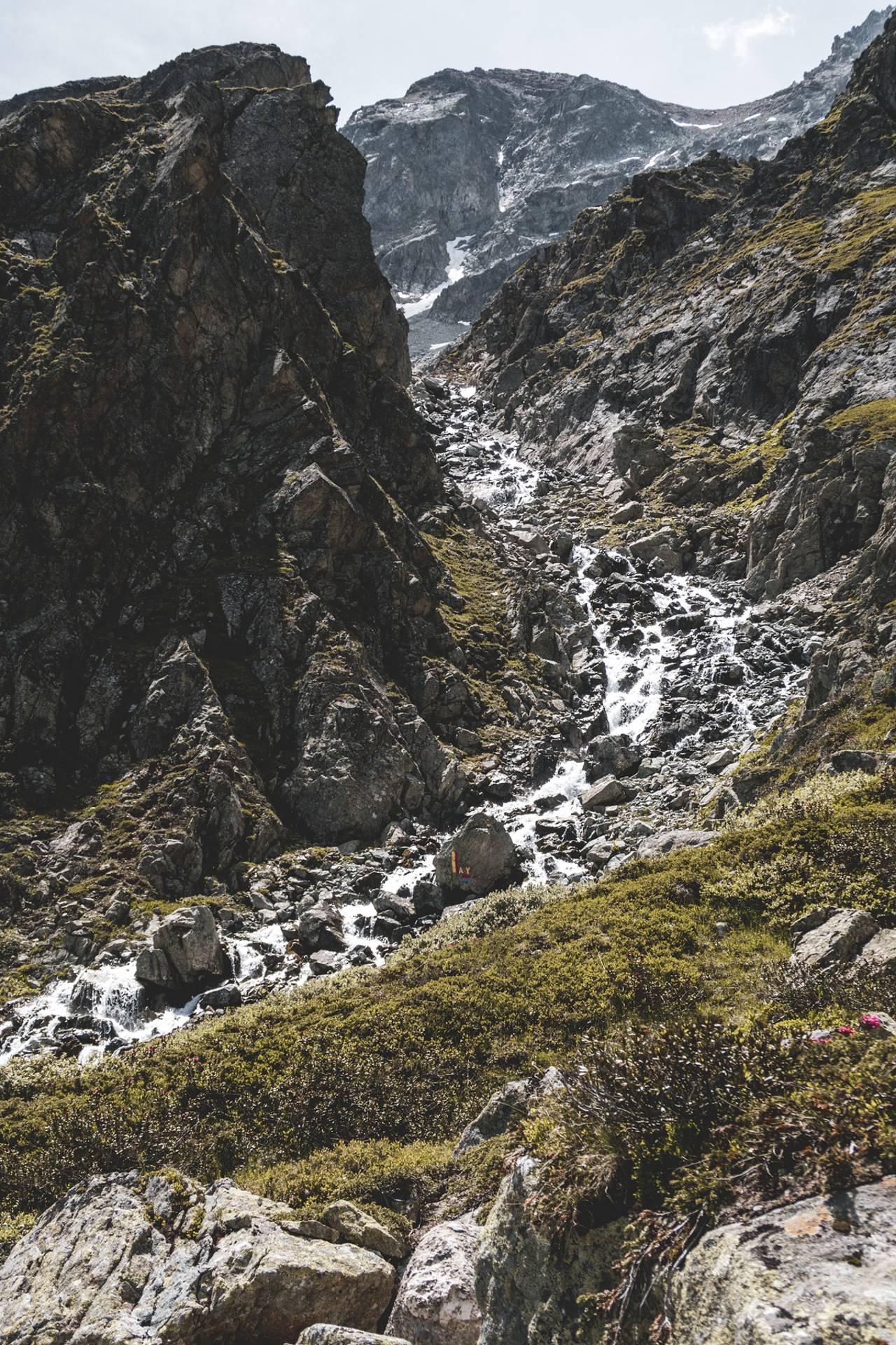 * le sentier n’est pas toujours bien visible ni très bien balisé. Il faut bien suivre les marquages rouges et blanc et ignorer les autres. Avoir l’application SuisseMobile ou télécharger le tracé GPS peut être très utile ici. Le tracé franchit également des éboulis et des cours d’eau qui, selon la saison, peuvent être un peu délicats à traverser. Il n’y a pas de risque de se faire emporter mais si on choisit mal son endroit, on peut vite se retrouver avec les pieds mouillés.