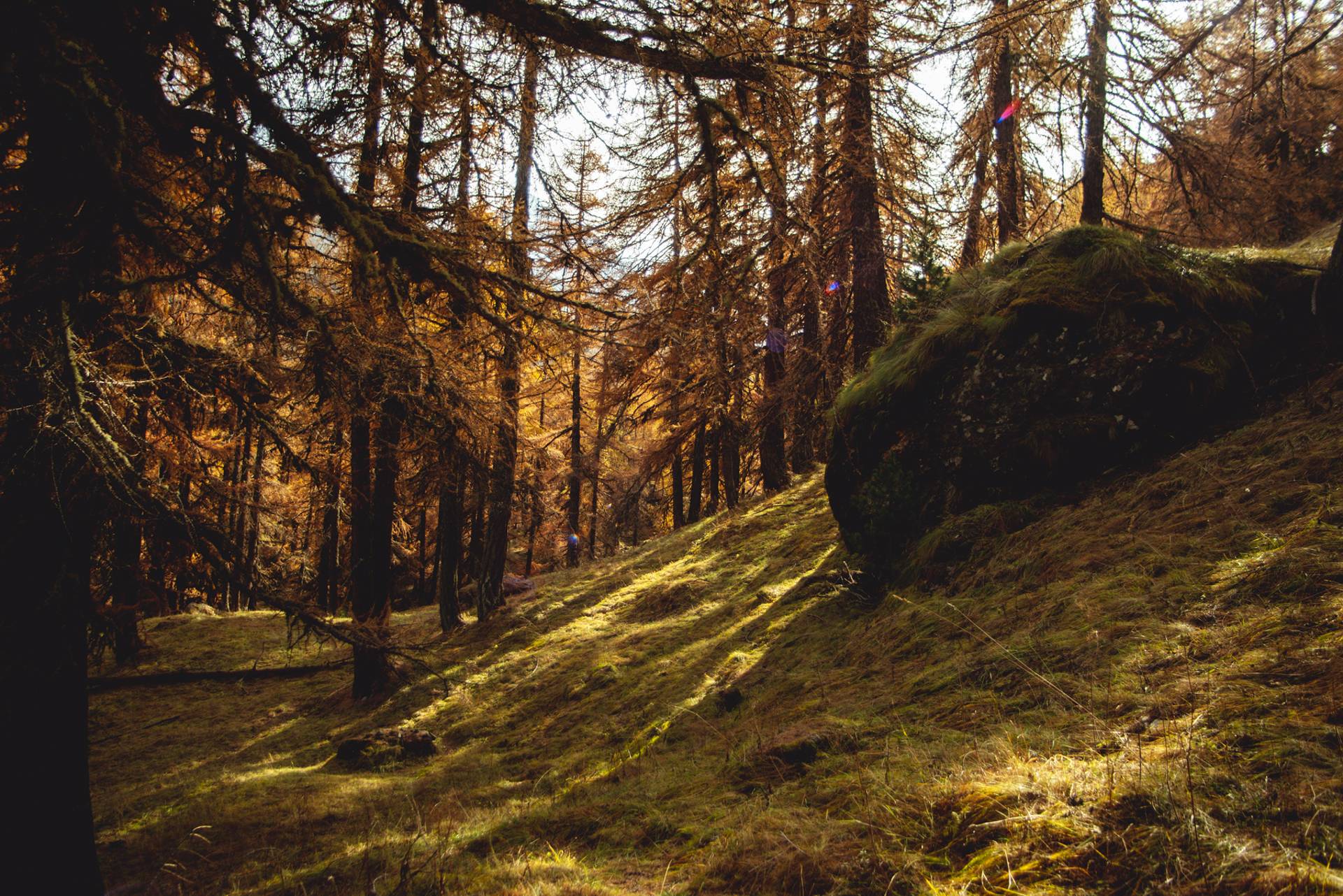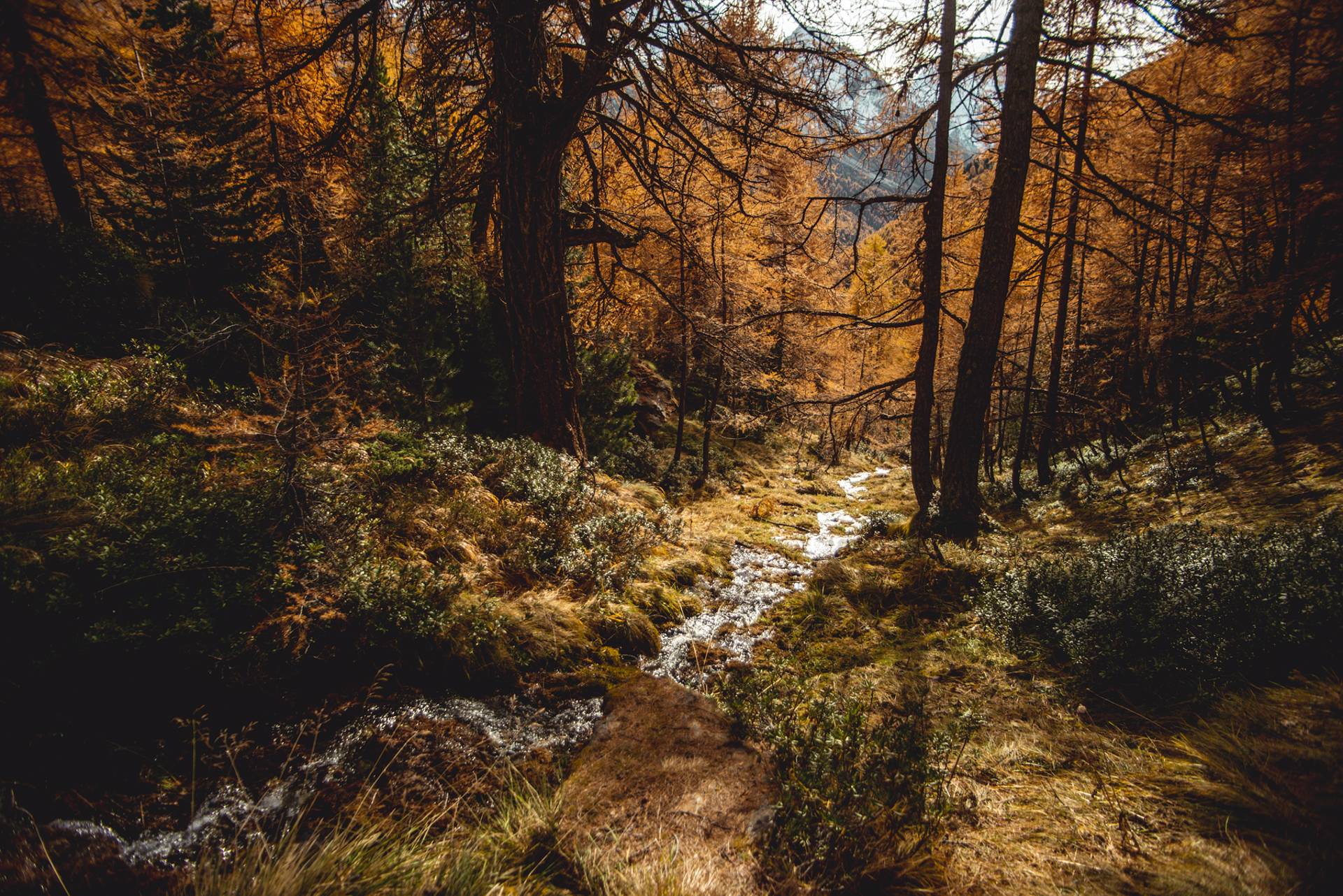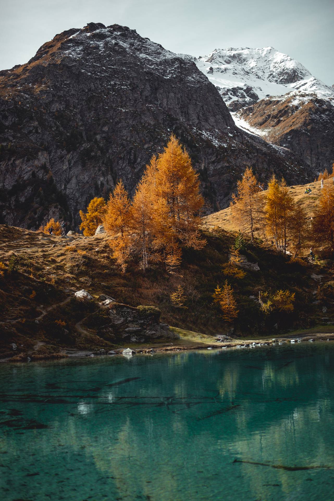 THE Lac Bleu d’Arolla, perle limpide facilement accessible depuis le lieu-dit « La Gouille », est une véritable star locale. Ne vous attendez donc pas à vous retrouver seul au monde, sauf éventuellement si vous partez à l’aube. Mais l’itinéraire que je propose aujourd’hui est un peu moins couru et un peu plus long que l’habituel aller-retour depuis La Gouille. Cela permet au moins de ne pas croiser trop de monde jusqu’au lac et de profiter des magnifiques forêts de mélèzes en toute tranquillité.