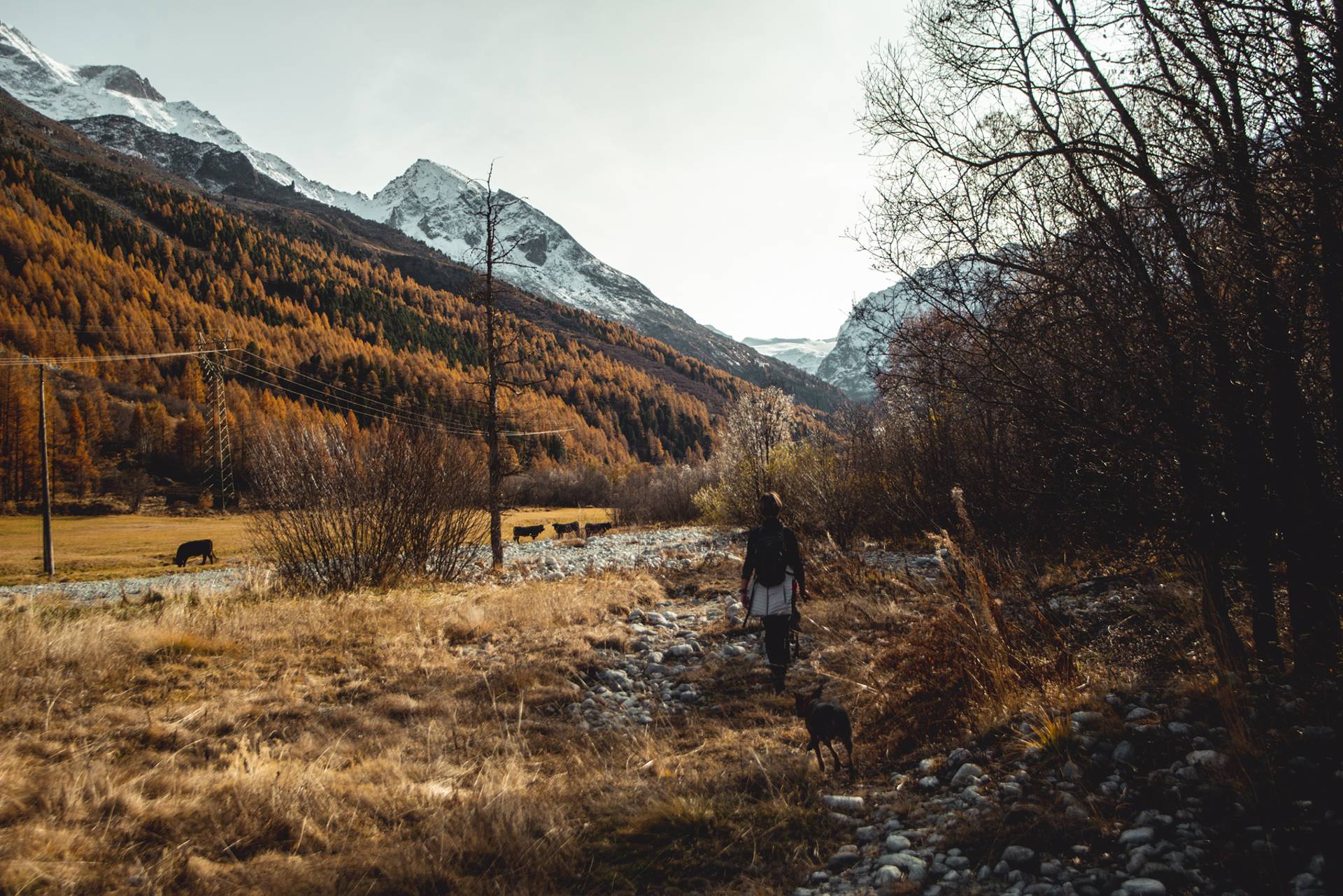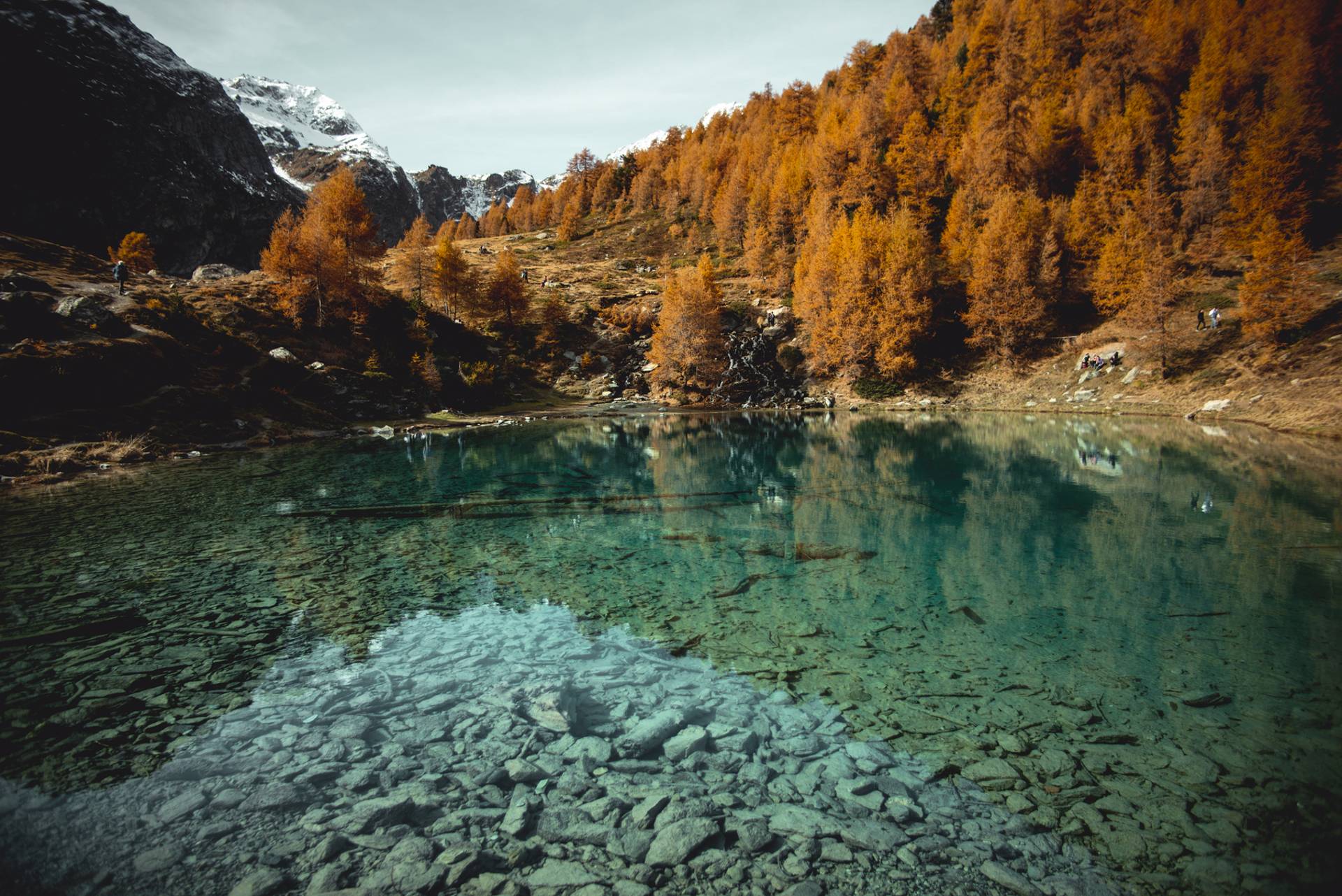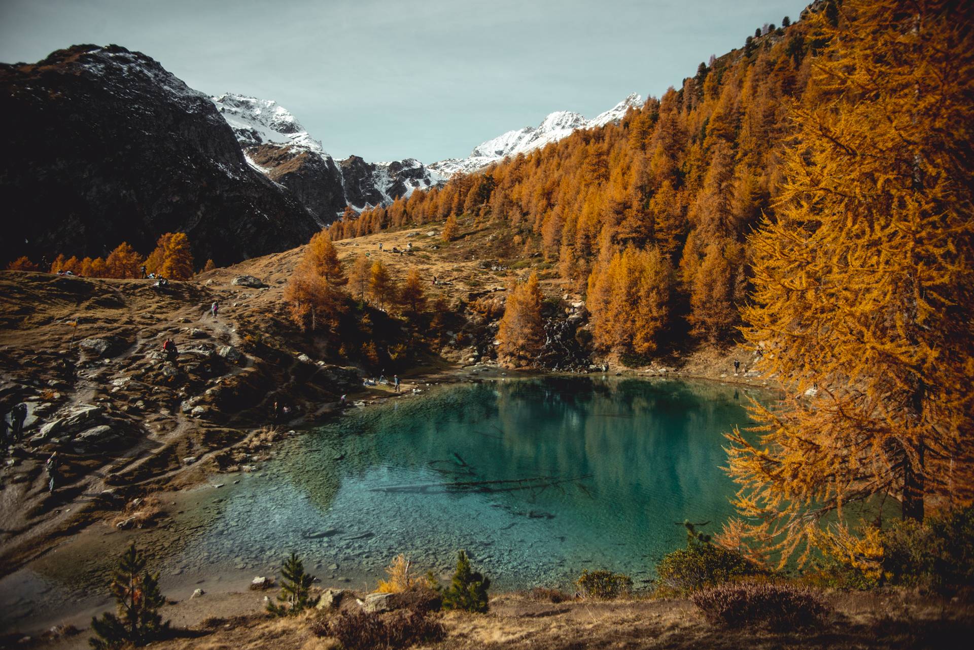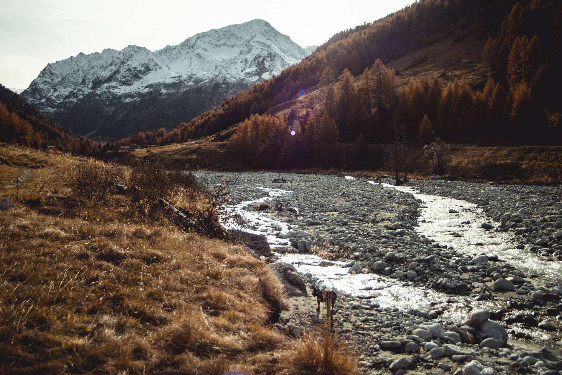 THE Lac Bleu d’Arolla, perle limpide facilement accessible depuis le lieu-dit « La Gouille », est une véritable star locale. Ne vous attendez donc pas à vous retrouver seul au monde, sauf éventuellement si vous partez à l’aube. Mais l’itinéraire que je propose aujourd’hui est un peu moins couru et un peu plus long que l’habituel aller-retour depuis La Gouille. Cela permet au moins de ne pas croiser trop de monde jusqu’au lac et de profiter des magnifiques forêts de mélèzes en toute tranquillité.
