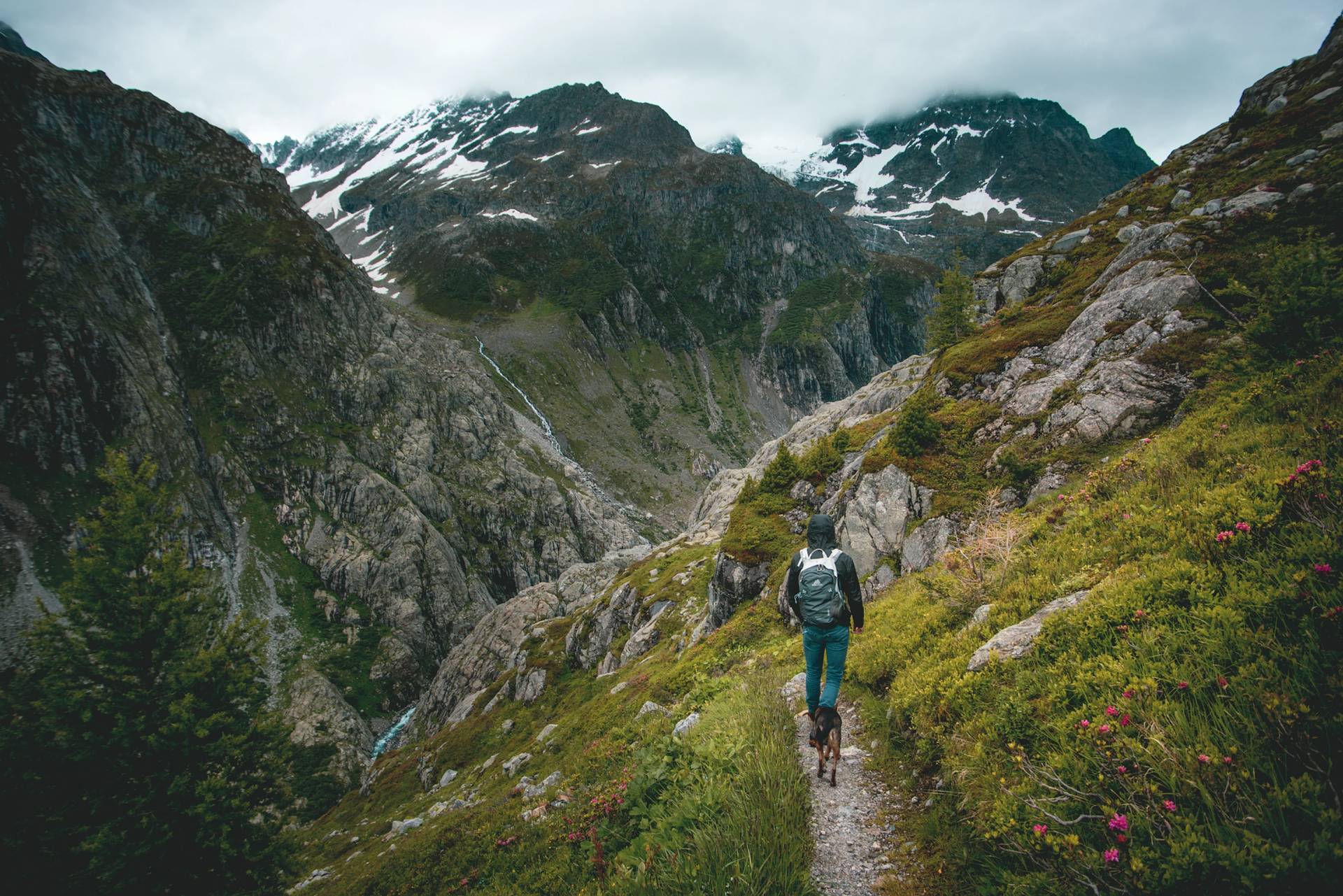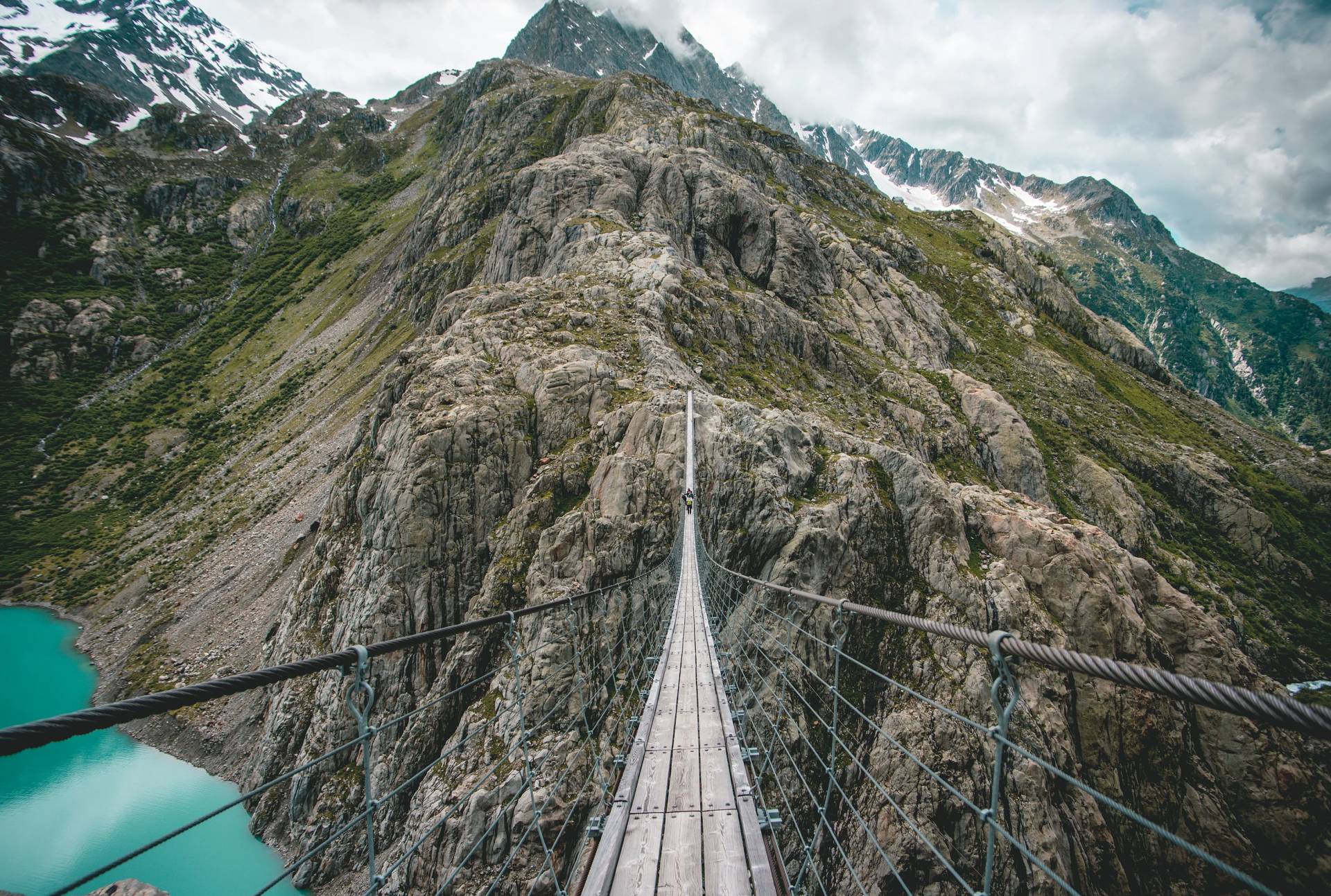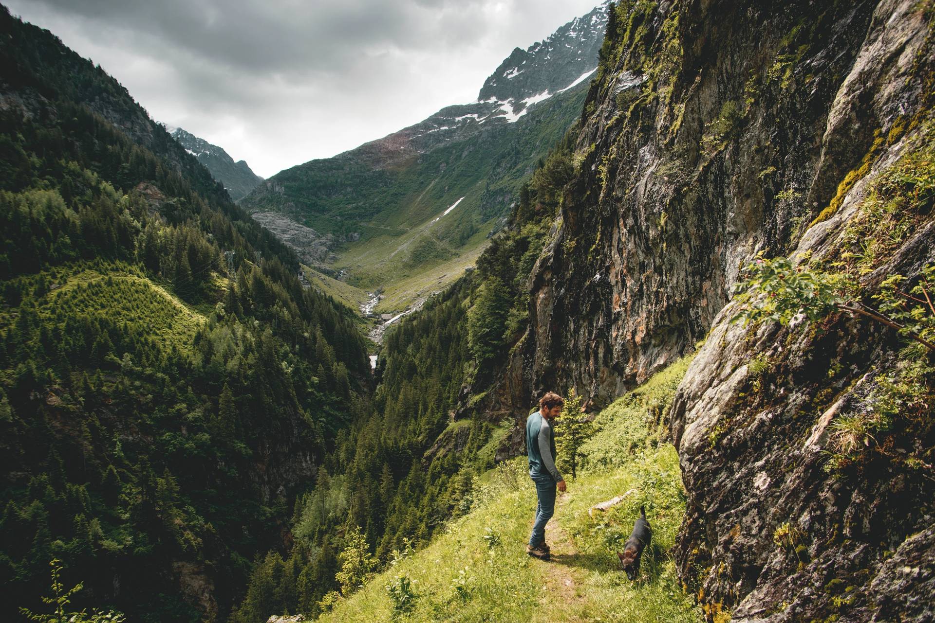 Le plan de base était de monter avec la cabine et de démarrer la randonnée vers le pont du Trift depuis la station supérieure du lift. Mais au moment de prendre la cabine le matin, nous avons découvert qu’il fallait en fait réserver son billet (avec attribution d’une heure précise de trajet). Le temps d’attente sans réservation était de plus d’une heure et nous avons donc décidé de parcourir cette première portion à la force du mollet ! Nous avons toutefois réservé notre billet de retour pour la fin d’après-midi.
