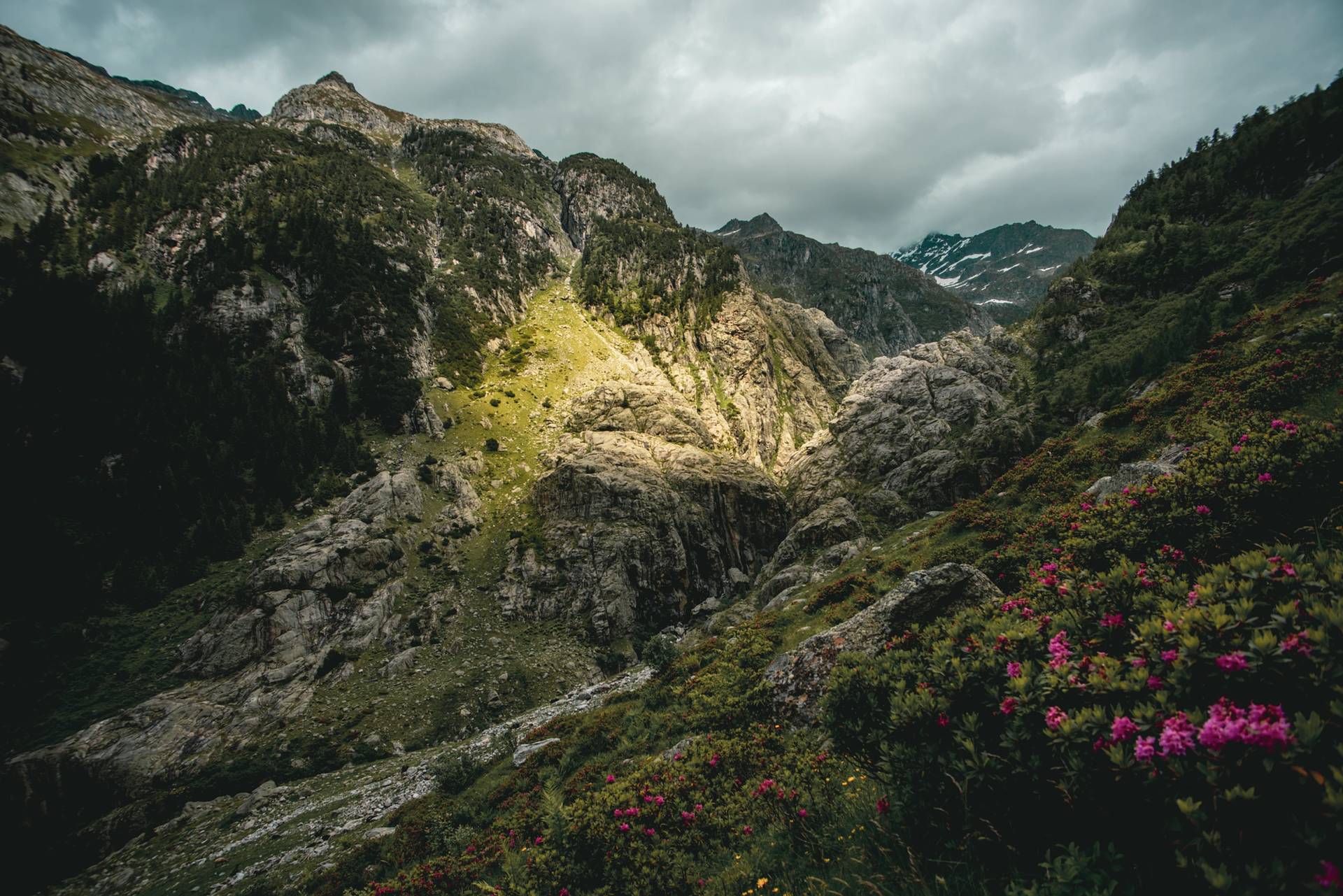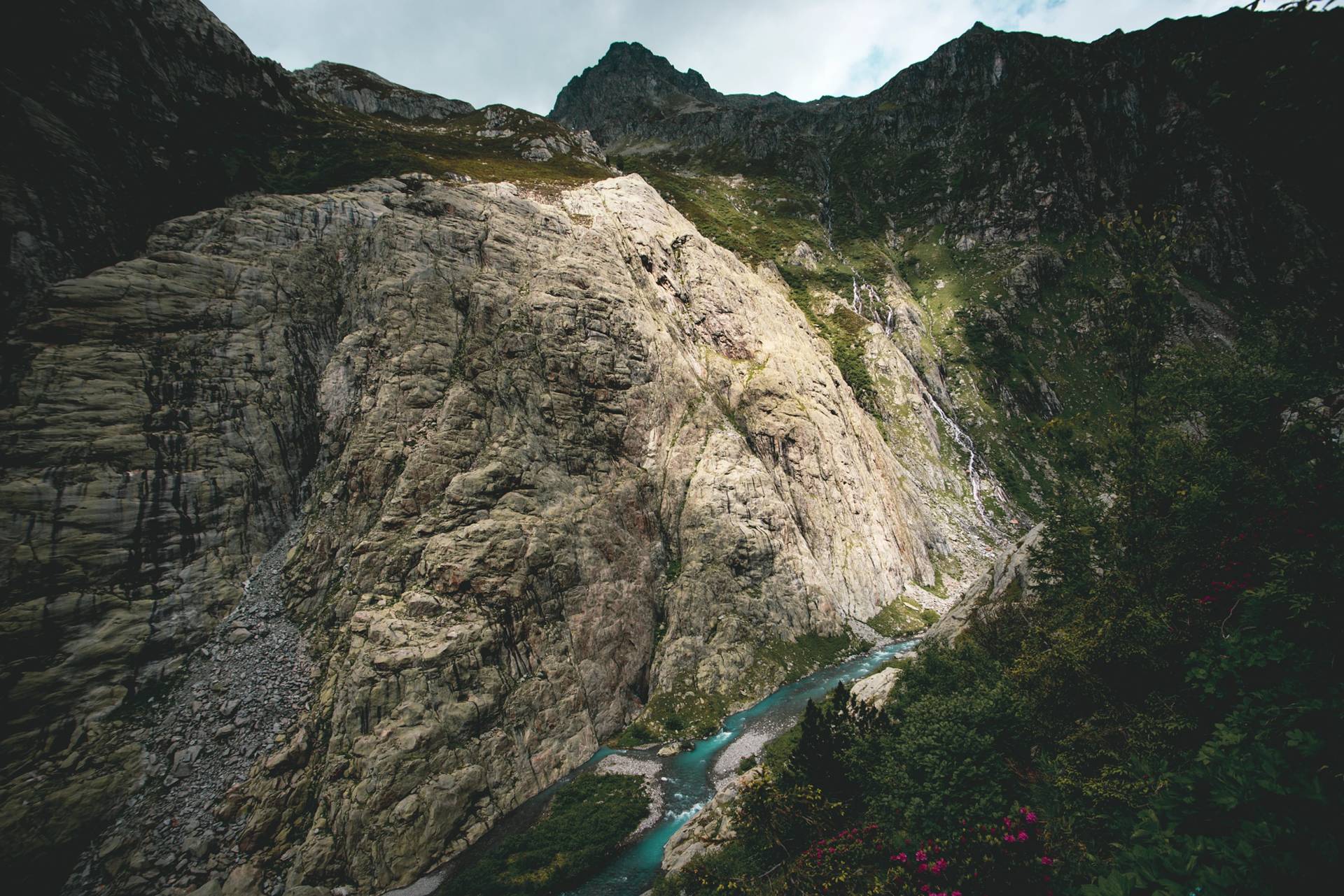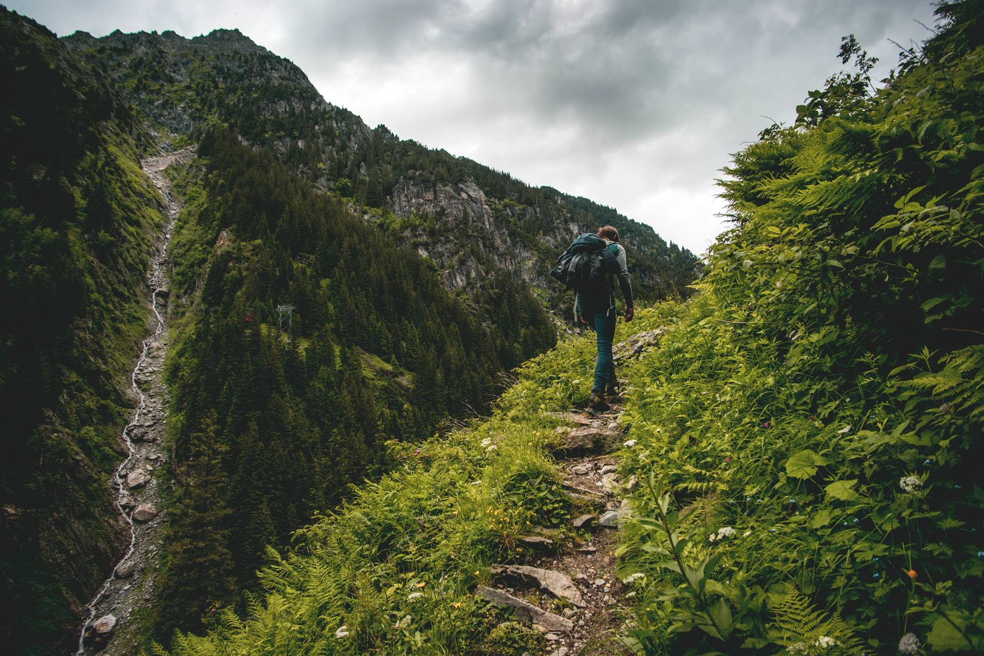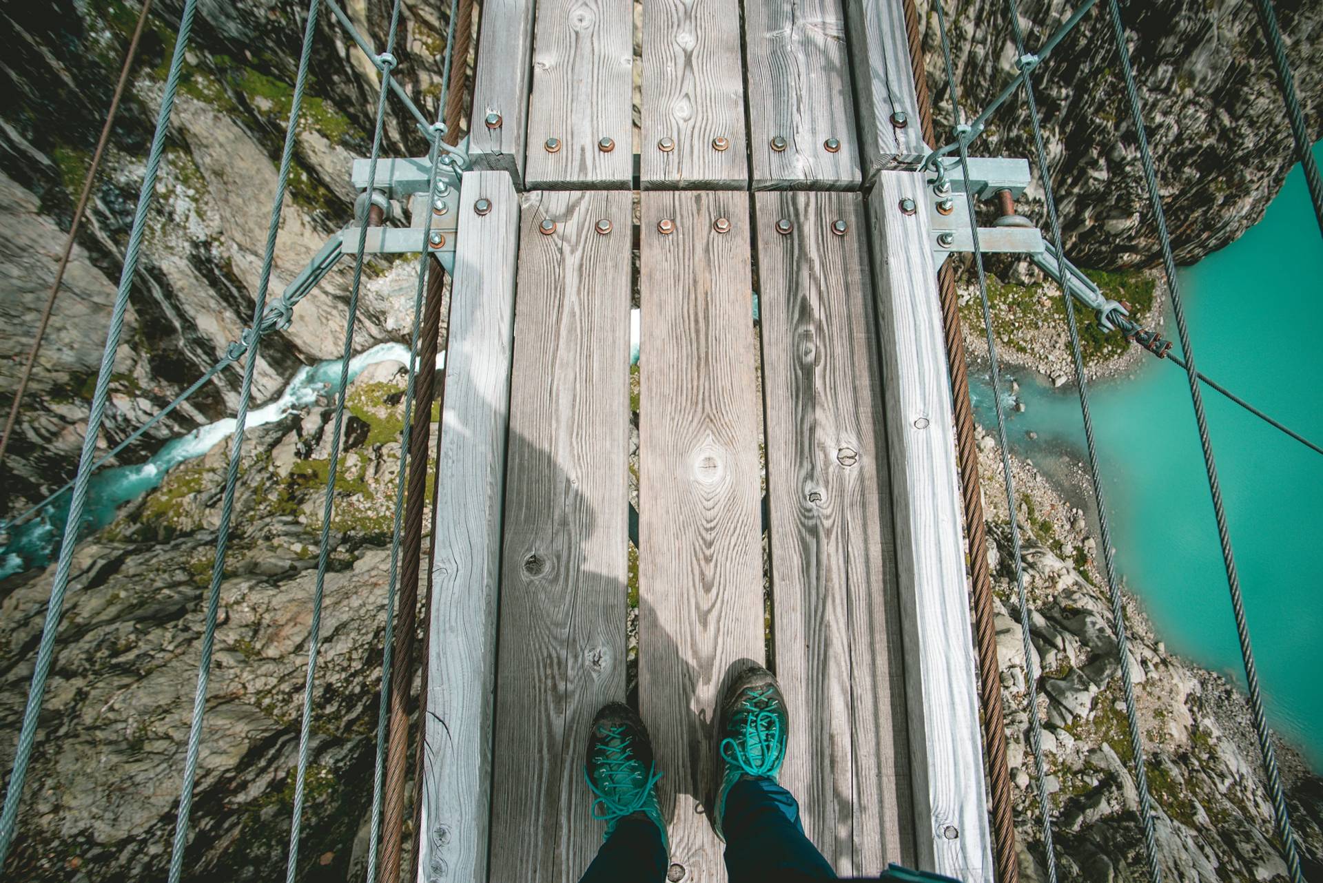 Le plan de base était de monter avec la cabine et de démarrer la randonnée vers le pont du Trift depuis la station supérieure du lift. Mais au moment de prendre la cabine le matin, nous avons découvert qu’il fallait en fait réserver son billet (avec attribution d’une heure précise de trajet). Le temps d’attente sans réservation était de plus d’une heure et nous avons donc décidé de parcourir cette première portion à la force du mollet ! Nous avons toutefois réservé notre billet de retour pour la fin d’après-midi.