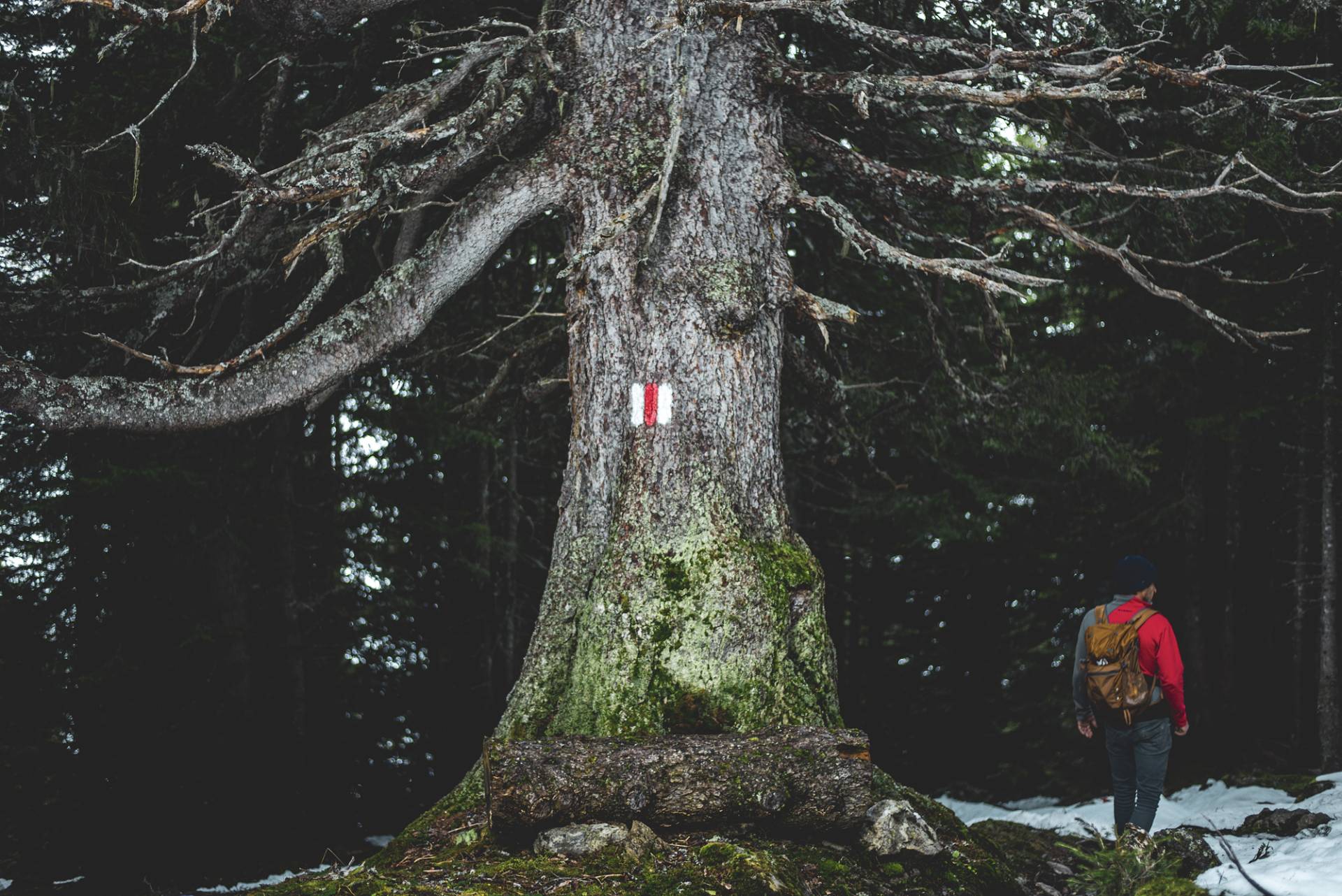 De là, suivre la boucle dans le sens inverse des aiguilles d’une montre, en commençant pas la montée en lacets dans la forêt.
